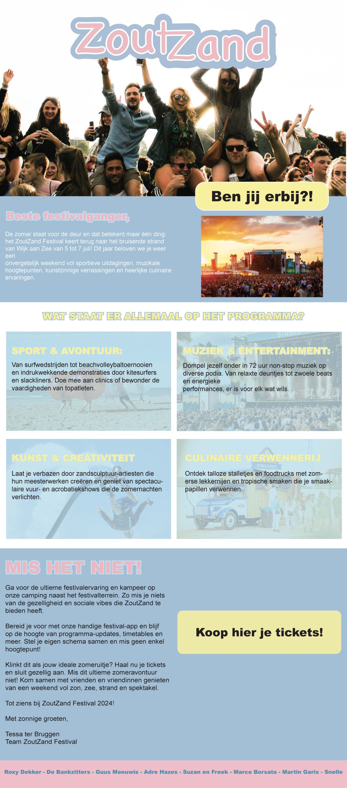 Voor het festival ZoutZand heb ik een visuele identiteit ontwikkeld die zorgt voor herkenbaarheid en een sterke uitstraling.